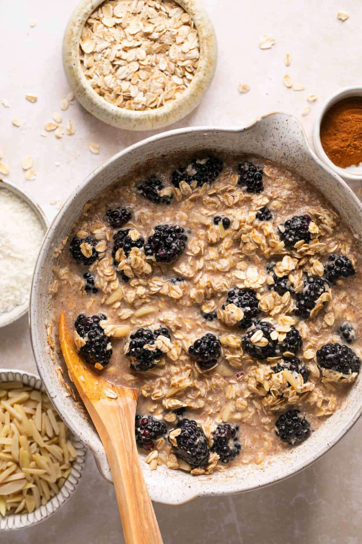 Fresh blackberries:ย I love this recipe because it’s a different way to use up all of those delicious fresh blackberries that come into season during the summer. They’re fresh and juicy and perfect for this baked oatmeal.