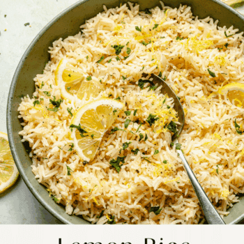 This Lemon Rice Recipe is garlicky, buttery, with lots of lemon juice and zest. Flavorful and quick to prepare, it’s an easy way to add flavor to all your meals!
